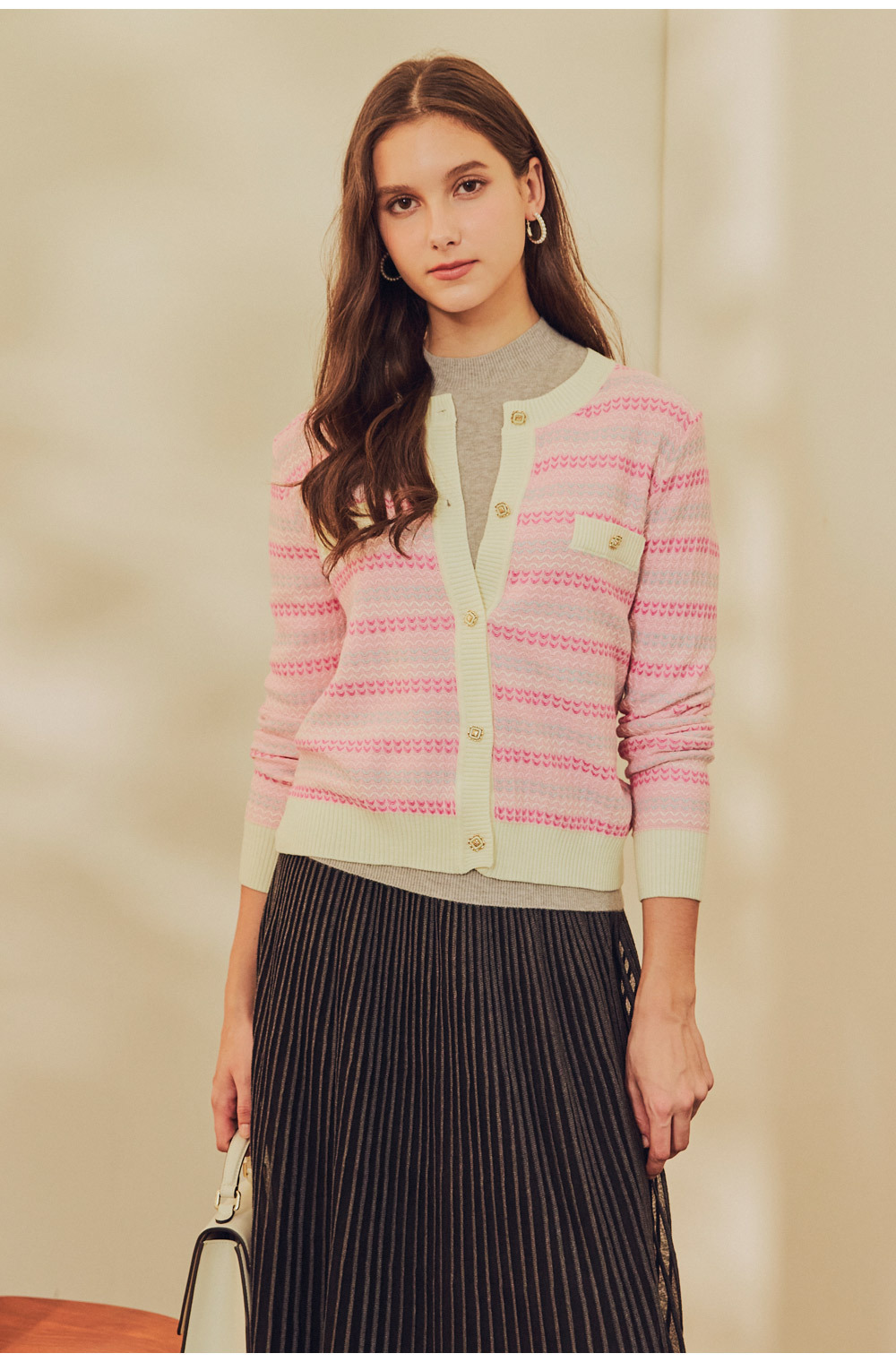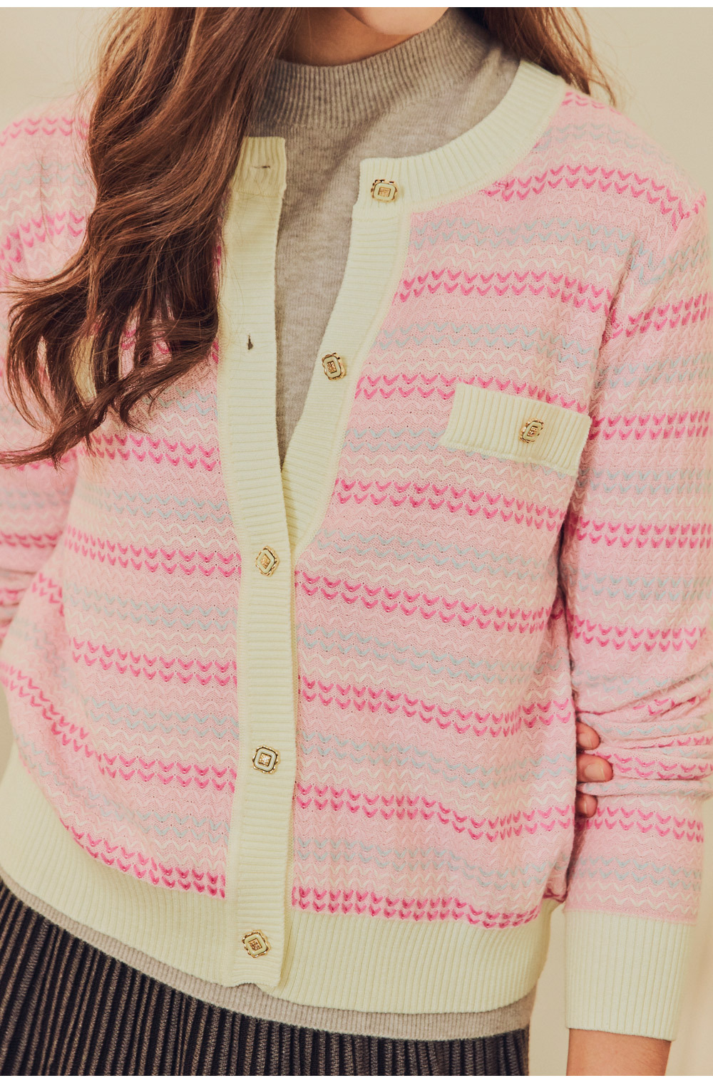 優雅日常條紋小香針織外套