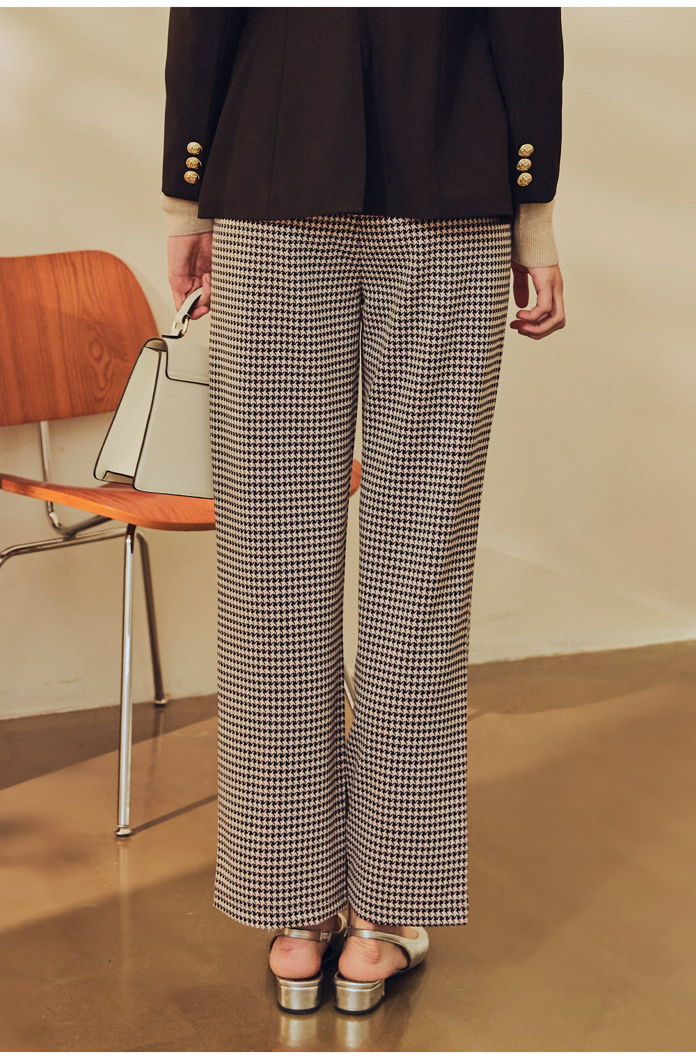 都會千鳥格直筒長褲