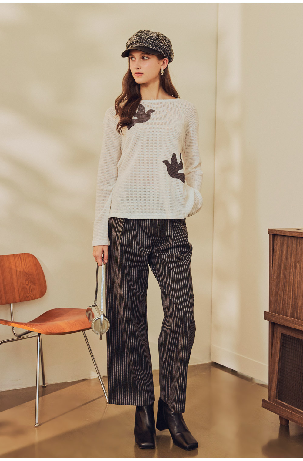 飛鳥圖樣輕針織上衣
